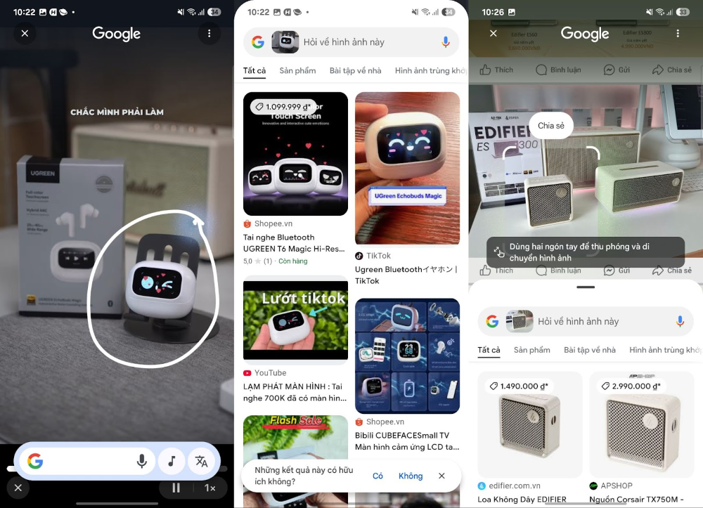 - Tìm kiếm sản phẩm "trong nháy mắt": Khi bắt gặp một món đồ thú vị trong video, tôi chỉ cần nhấn giữ nút đa nhiệm và khoanh tròn vật thể đó. Ngay lập tức, thông tin chi tiết về sản phẩm, bao gồm cả nơi mua, hiện ra mà không cần phải rời khỏi video. Quá trình này nhanh và trực quan hơn nhiều so với việc chụp ảnh màn hình rồi tìm kiếm qua Google Lens.