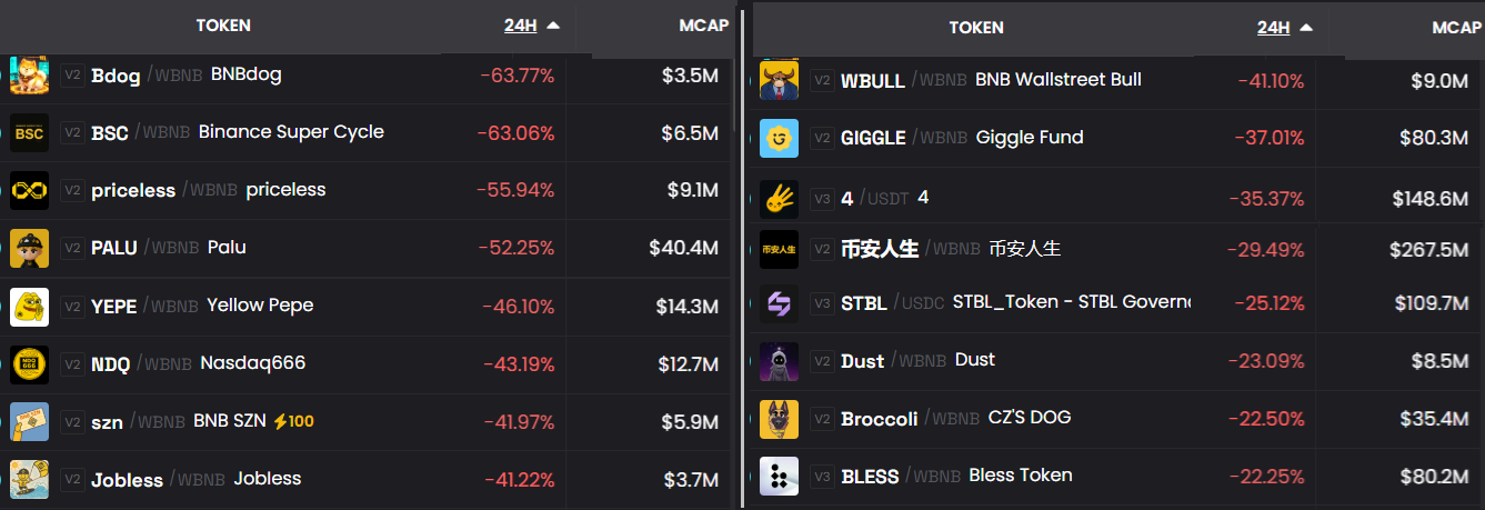 Cuối cùng, không thể bỏ qua tác động từ chính token gốc của hệ sinh thái. Việc giá BNB giảm 9.5% từ mức cao nhất mọi thời đại đã tạo ra một làn sóng tiêu cực bao trùm toàn bộ thị trường. Trong một hệ sinh thái, giá của token nền tảng (như BNB) thường đóng vai trò như một chỉ báo sức khỏe chung. Khi BNB yếu đi, niềm tin vào các dự án nhỏ hơn, rủi ro hơn như memecoin cũng sẽ suy giảm, thúc đẩy các nhà đầu tư bán tháo để tìm nơi trú ẩn an toàn hơn.