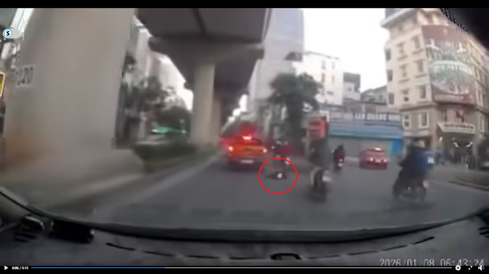 Ngã ba Cầu Giấy - Nguyễn Văn Huyên, một người đi xe máy phóng nhanh vượt ẩu đã nằm lại. Tết nhất sắp tới rồi, nhẹ tay ga thôi các bác, chỉ tội bác bán tải đúng oan gia.