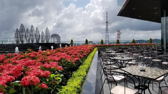 1. Vị trí đắc địa: Sky Bar Huế nằm trên tầng cao nhất của Vinpearl Huế, tòa nhà cao nhất thành phố, sở hữu tầm nhìn ấn tượng với cảnh đẹp từ trên cao.